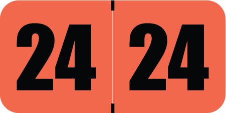 POS year labels have a wrap-around orange background with a black year. The year will be visible on each side of the folder when applied. Each label is 1-1/2" wide and 3/4" high, before folding.