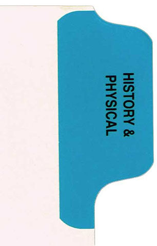 Individual Chart Divider Tabs, History & Physical, Blue, side Tab, 1/8th Cut, Pos. #1 (Pack of 25)