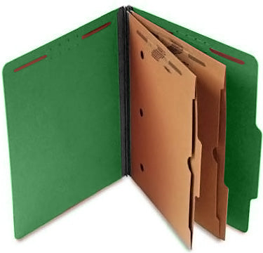 S60441 25 Pt. Pressboard Classification Folders, 2/5 Cut ROC Top Tab, Letter Size, 2 Pocket Dividers, Moss Green (Box of 15)