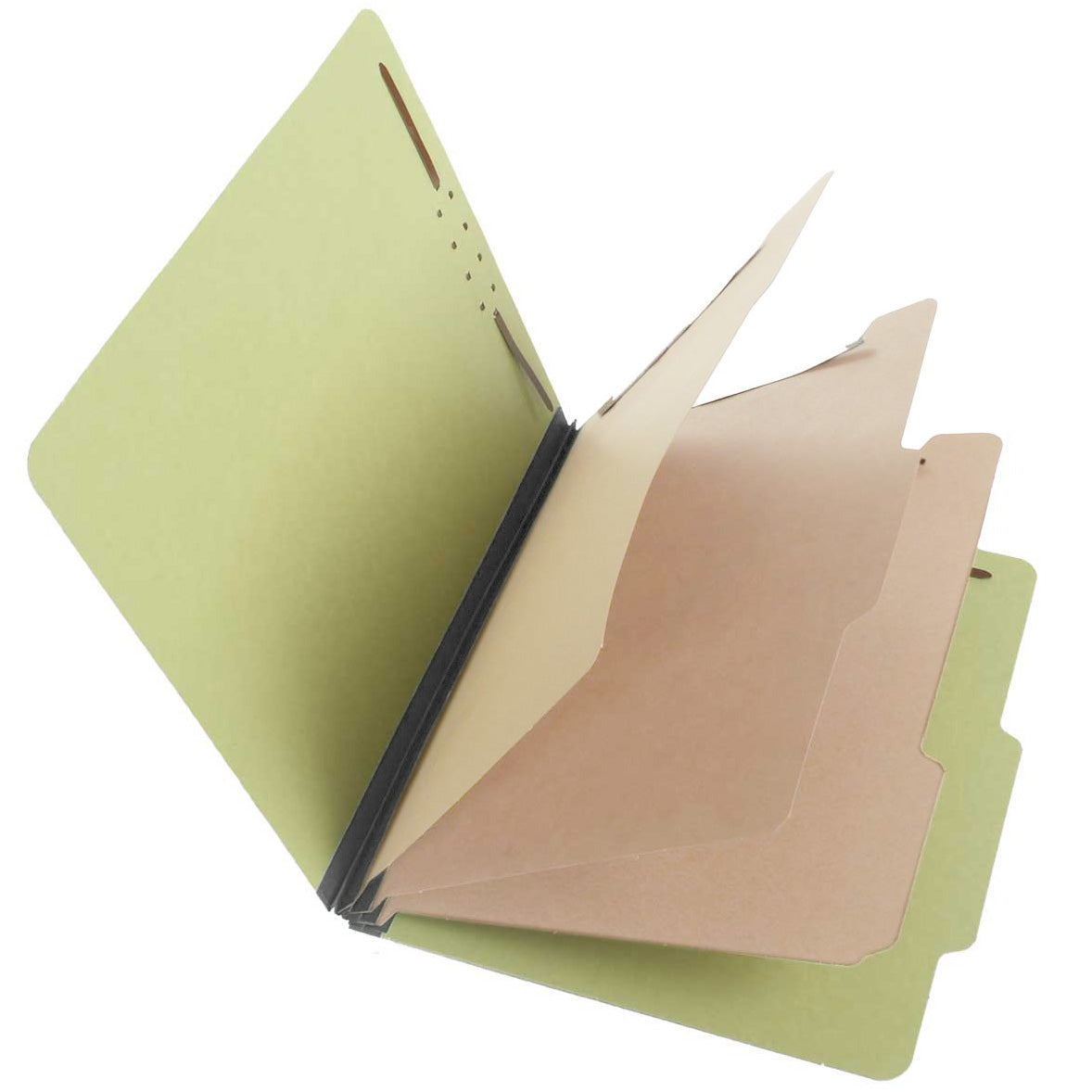 S60851 25 Pt Pressboard Classification Folders, 2/5 Cut ROC Top Tab, Letter Size, 3 Dividers, Peridot Green (Box of 10)