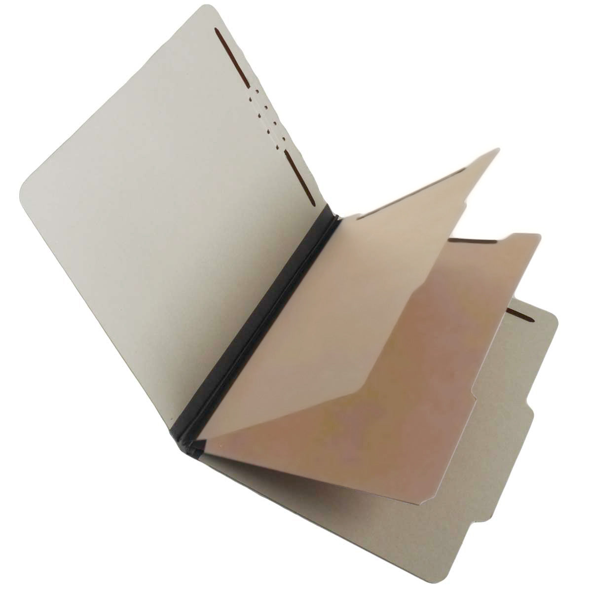 S60902 25 Pt Pressboard Classification Folders, 2/5 Cut ROC Top Tab, Letter Size, 2 Dividers, Gray (Box of 15)