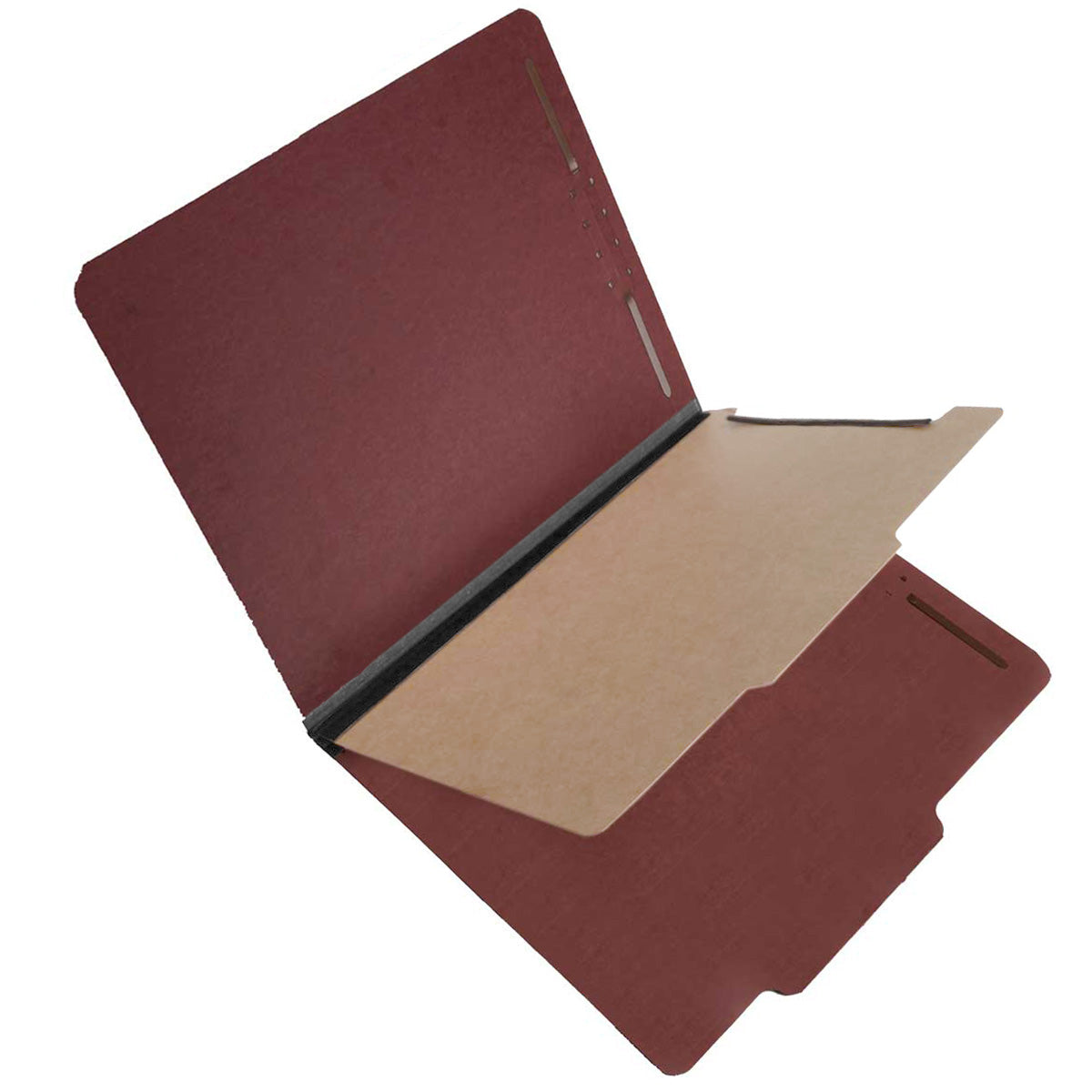 S60950 25 Pt Pressboard Classification Folders, 2/5 Cut ROC Top Tab, Letter Size, 1 Divider, Red (Box of 20)
