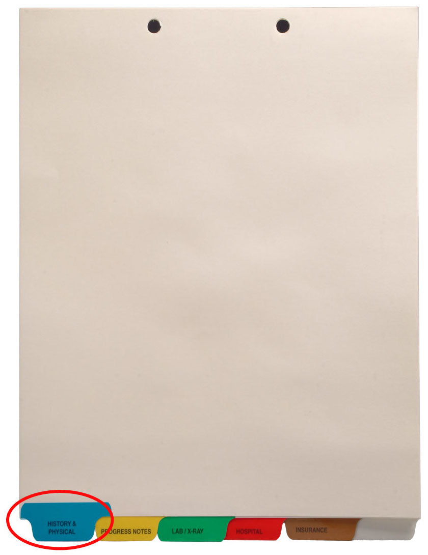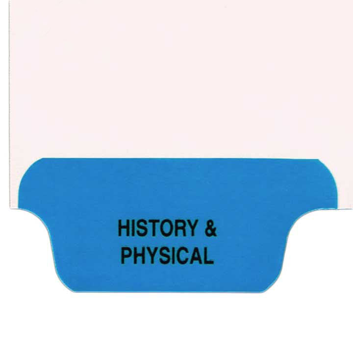 Individual Chart Divider Tabs, History & Physical, Blue, Bottom Tab, 1/6th Cut, Pos. #1 (Pack of 25)