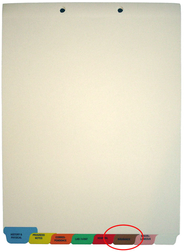 Individual Chart Divider Tabs, Insurance, Brown, Bottom Tab, 1/8th Cut, Pos. #6 (Pack of 25)