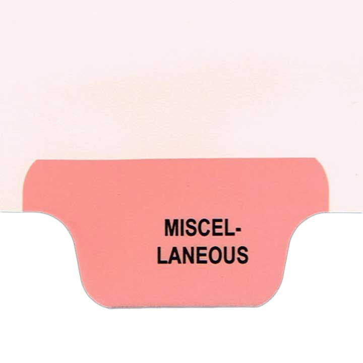 Individual Chart Divider Tabs, Miscellaneous, Pink, Bottom Tab, 1/8th Cut, Pos. #7 (Pack of 25)