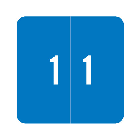 Smead DCC numeric labels feature a wrap-around blue background with a white number. The number will be visible on each side of the folder when applied. Each label is 1-1/2" H x 1-1/2" W before folding.