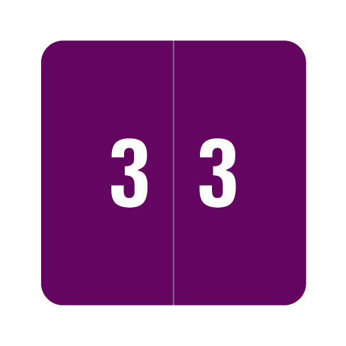 Smead DCC numeric labels feature a wrap-around purple background with a white number. The number will be visible on each side of the folder when applied. Each label is 1-1/2" H x 1-1/2" W before folding.