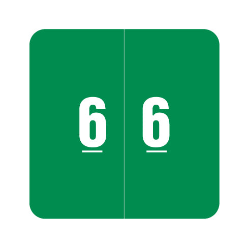 Smead DCC numeric labels feature a wrap-around green background with a white number. The number will be visible on each side of the folder when applied. Each label is 1-1/2" H x 1-1/2" W before folding.