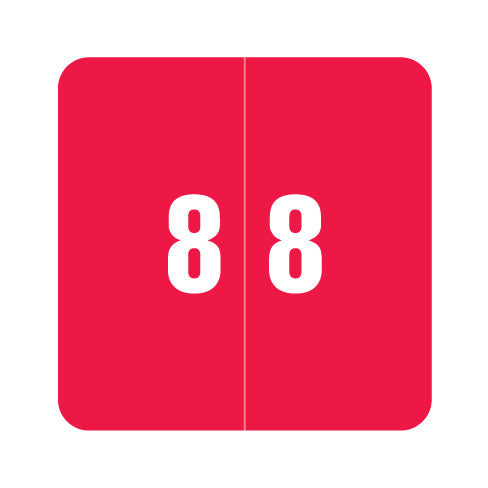 Smead DCC numeric labels feature a wrap-around red background with a white number. The number will be visible on each side of the folder when applied. Each label is 1-1/2" H x 1-1/2" W before folding.