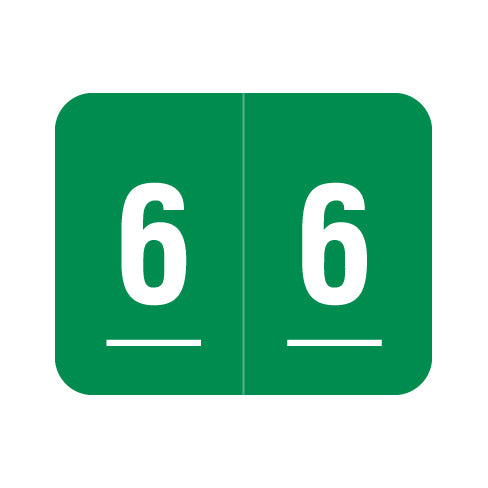 Smead DCCRN numeric labels feature a wrap-around green background with a white number. The number will be visible on each side of the folder when applied. Each label is 1"H x 1-1/4"W before folding.