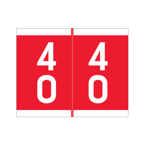 Barkley DSFM Double Digit labels feature a wrap-around red background with white numbers. The numbers will be visible on each side of the folder when applied. Each label is 1-3/16"H x 1-1/2"W before folding.