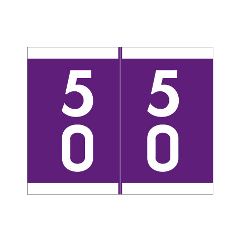 Barkley DSFM Double Digit labels feature a wrap-around purple background with white numbers. The numbers will be visible on each side of the folder when applied. Each label is 1-3/16"H x 1-1/2"W before folding.