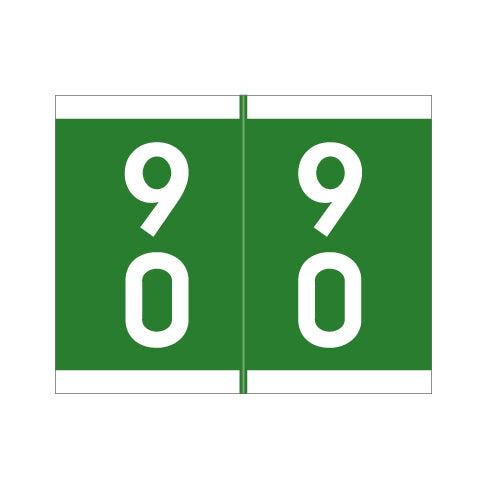 Barkley DSFM Double Digit labels feature a wrap-around green background with white numbers. The numbers will be visible on each side of the folder when applied. Each label is 1-3/16"H x 1-1/2"W before folding.