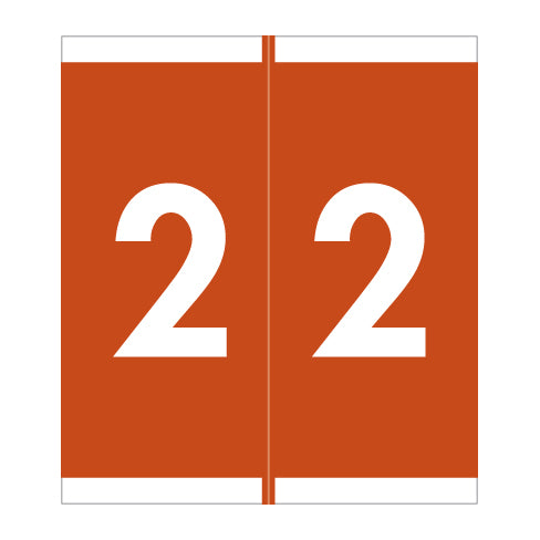 Barkley NSFM numeric labels feature a wrap-around brown background with white number. The numbers will be visible on each side of the folder when applied. Each label is 1-11/16" H x1-1/2" W before folding.