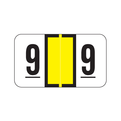 Safeguard numeric labels feature a wrap-around yellow bar outlined in black and a black number on a white background. The number will be visible on each side of the folder when applied. Each label is 15/16"H x 1-5/8"W before folding.