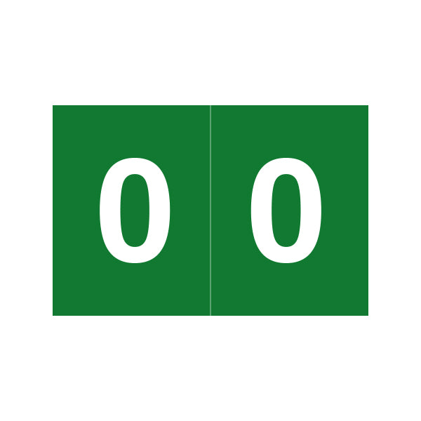 S&W SKNM numeric labels feature a wrap-around green background and a white number. The number will be visible on each side of the folder when applied. Each label is 1" H X 1-1/2" W before folding.