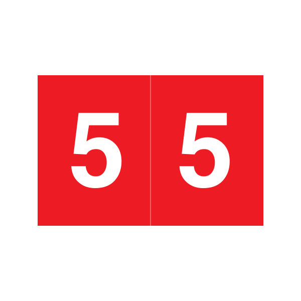 S&W SKNM numeric labels feature a wrap-around red background and a white number. The number will be visible on each side of the folder when applied. Each label is 1" H X 1-1/2" W before folding.