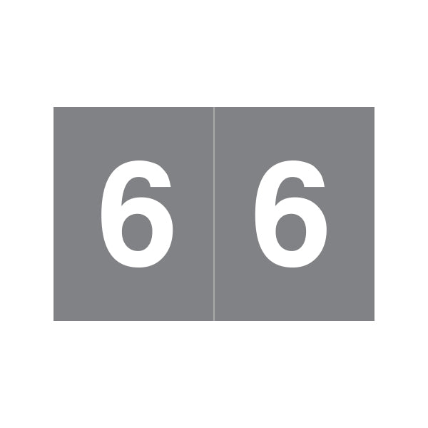 S&W SKNM numeric labels feature a wrap-around gray background and a white number. The number will be visible on each side of the folder when applied. Each label is 1" H X 1-1/2" W before folding.