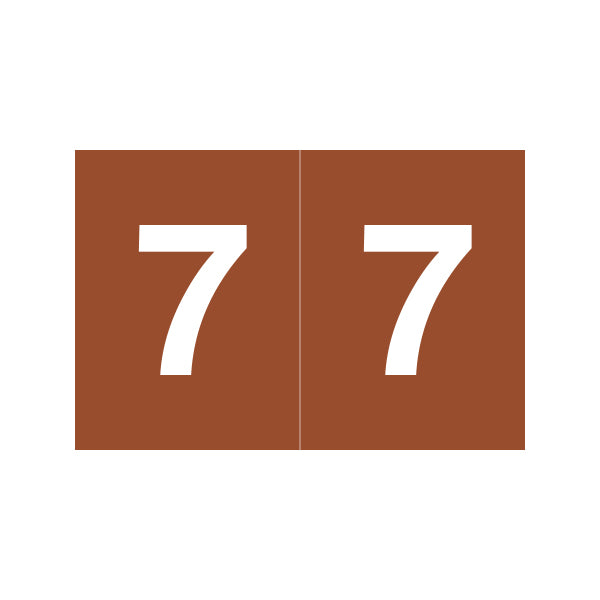 S&W SKNM numeric labels feature a wrap-around brown background and a white number. The number will be visible on each side of the folder when applied. Each label is 1" H X 1-1/2" W before folding.