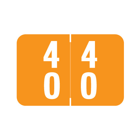 Smead DDS numeric labels feature a wrap-around orange background with white numbers. The numbers will be visible on each side of the folder when applied. Each label is 1"H x 1-1/2"W before folding.