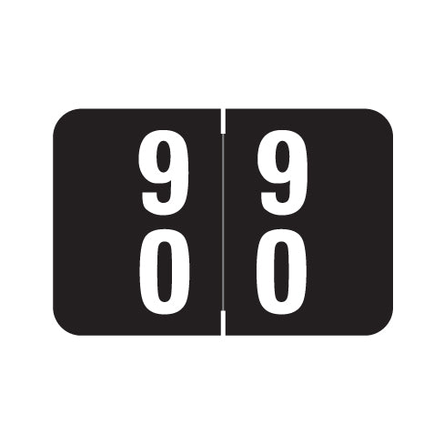 Smead DDS numeric labels feature a wrap-around black background with white numbers. The numbers will be visible on each side of the folder when applied. Each label is 1"H x 1-1/2"W before folding.