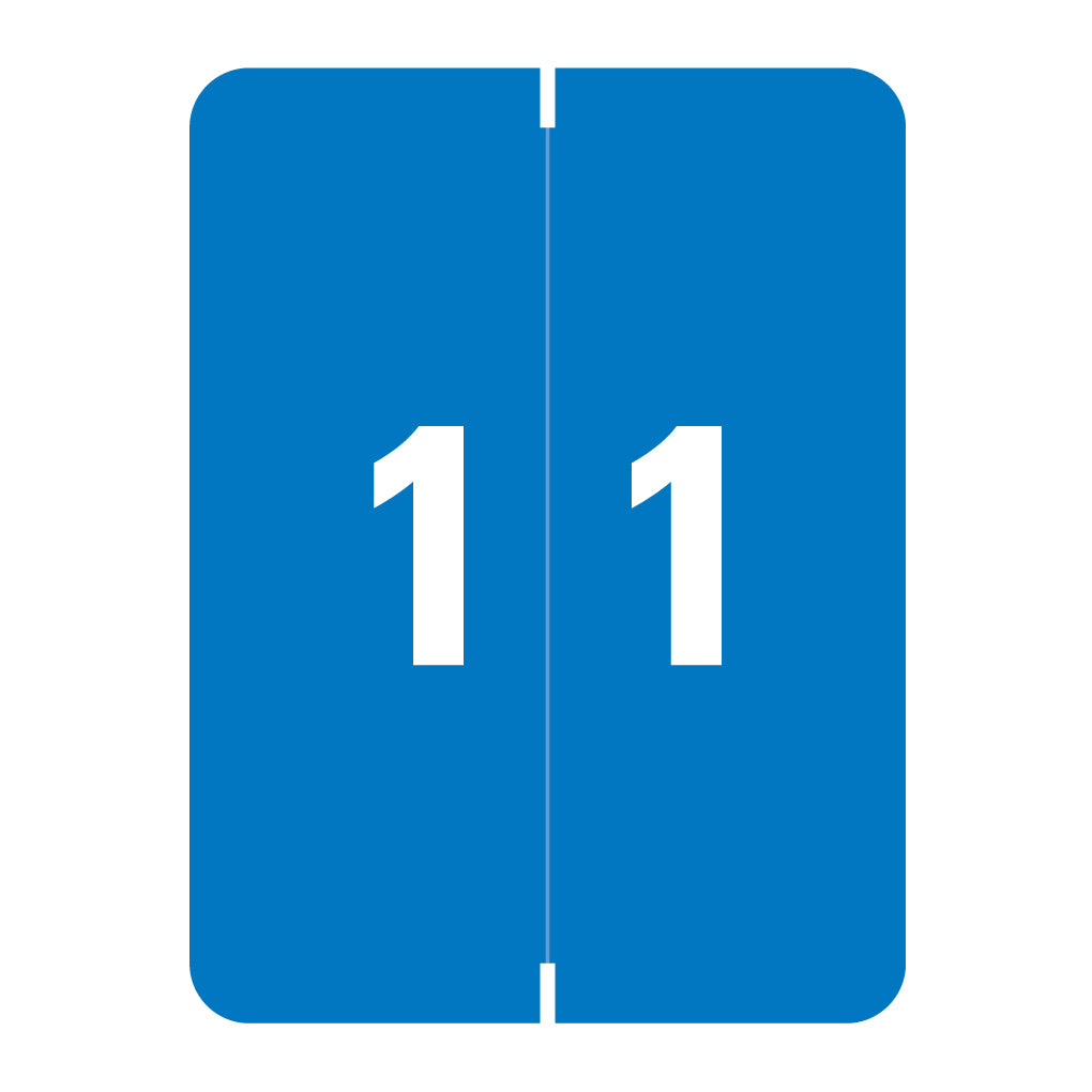 Smead XLCC numeric labels feature a wrap-around blue background with a white number. The number will be visible on each side of the folder when applied. Each label is 2" H x 1-1/2" W before folding.