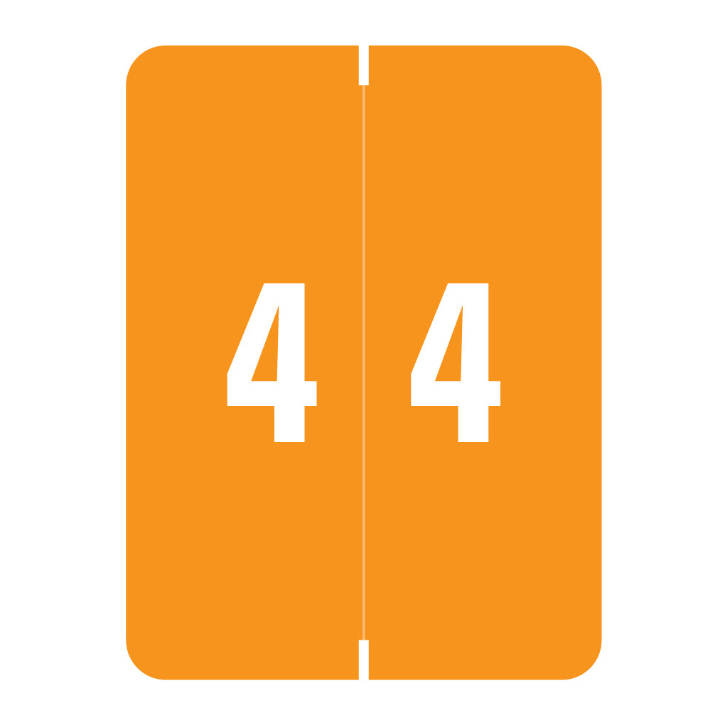 Smead XLCC numeric labels feature a wrap-around orange background with a white number. The number will be visible on each side of the folder when applied. Each label is 2" H x 1-1/2" W before folding.