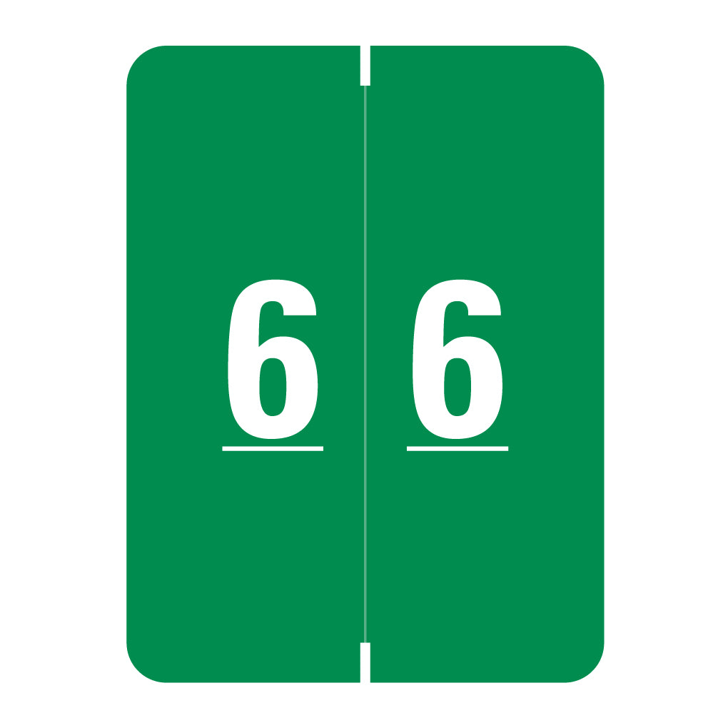 Smead XLCC numeric labels feature a wrap-around green background with a white number. The number will be visible on each side of the folder when applied. Each label is 2" H x 1-1/2" W before folding.