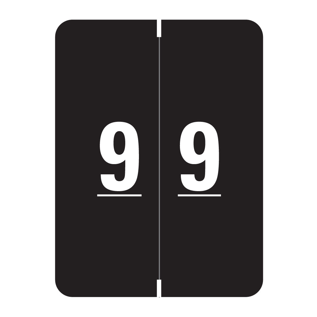 Smead XLCC numeric labels feature a wrap-around black background with a white number. The number will be visible on each side of the folder when applied. Each label is 2" H x 1-1/2" W before folding.