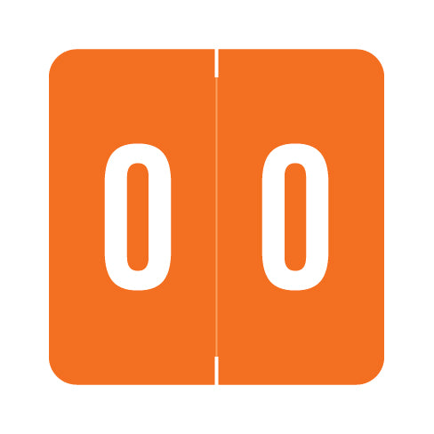 Sav-Tyme/SFI numeric labels feature a wrap-around orange background with a white number. The number will be visible on each side of the folder when applied. Each label is 1-1/2" W x 1-1/2" H before folding.