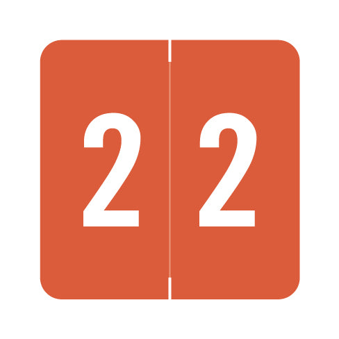 Sav-Tyme/SFI numeric labels feature a wrap-around burnt orange background with a white number. The number will be visible on each side of the folder when applied. Each label is 1-1/2" W x 1-1/2" H before folding.