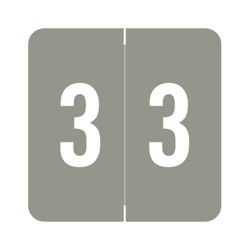 Sav-Tyme/SFI numeric labels feature a wrap-around gray background with a white number. The number will be visible on each side of the folder when applied. Each label is 1-1/2" W x 1-1/2" H before folding.