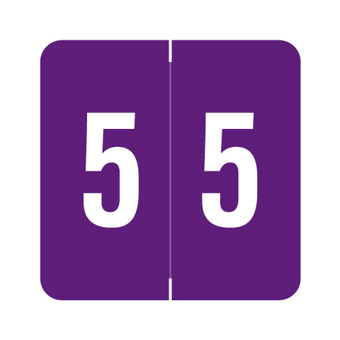 Sav-Tyme/SFI numeric labels feature a wrap-around purple background with a white number. The number will be visible on each side of the folder when applied. Each label is 1-1/2" W x 1-1/2" H before folding.