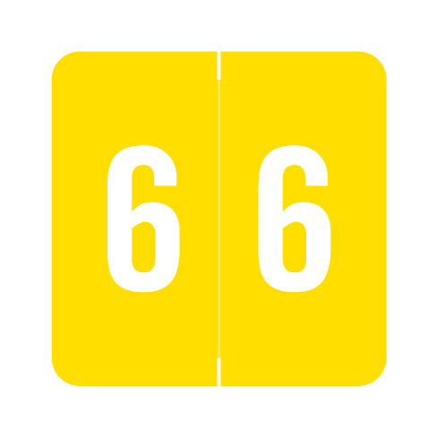 Sav-Tyme/SFI numeric labels feature a wrap-around yellow background with a white number. The number will be visible on each side of the folder when applied. Each label is 1-1/2" W x 1-1/2" H before folding.
