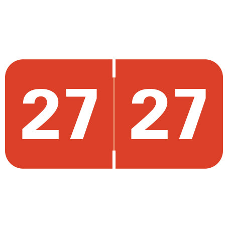 Tabbies 70200 series year labels have a wrap-around red background with a solid white year. The year will be visible on each side of the folder when applied. Each label is 3/4" H X 1-1/2" W, before folding.