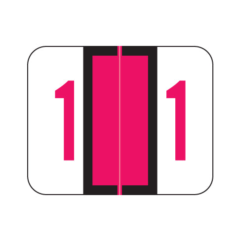 Smead BCCRN numeric labels feature a wrap-around red bar outlined in black with a red number on a white background. The number will be visible on each side of the folder when applied. Each label is 1"H x 1-1/4"W before folding.