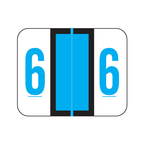 Smead BCCRN numeric labels feature a wrap-around blue bar outlined in black with a blue number on a white background. The number will be visible on each side of the folder when applied. Each label is 1"H x 1-1/4"W before folding.