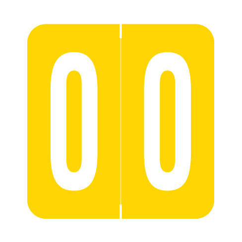 GBS 8860 labels feature a wrap-around yellow background and a white number. The numbers will be visible on each side of the folder when applied. Each label is 1.3"H x 1-1/4"W before folding.