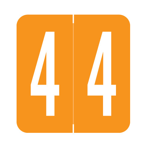 GBS 8860 labels feature a wrap-around orange background and a white number. The numbers will be visible on each side of the folder when applied. Each label is 1.3"H x 1-1/4"W before folding.