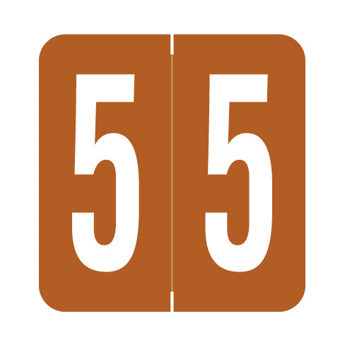 GBS 8860 labels feature a wrap-around brown background and a white number. The numbers will be visible on each side of the folder when applied. Each label is 1.3"H x 1-1/4"W before folding.