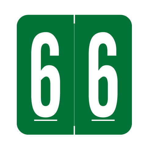 GBS 8860 labels feature a wrap-around green background and a white number. The numbers will be visible on each side of the folder when applied. Each label is 1.3"H x 1-1/4"W before folding.