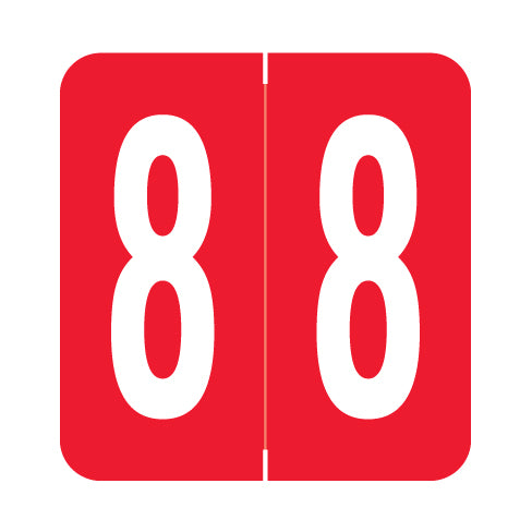 GBS 8860 labels feature a wrap-around red background and a white number. The numbers will be visible on each side of the folder when applied. Each label is 1.3"H x 1-1/4"W before folding.