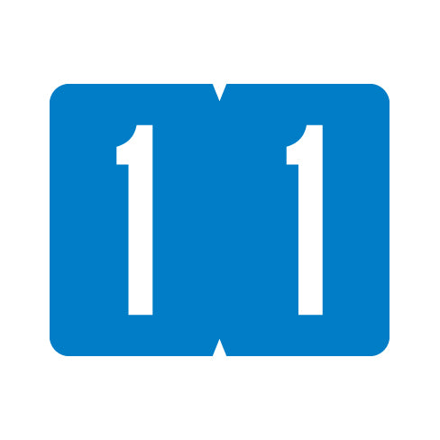 GBS VSNM numeric labels feature a wrap-around blue background with a white number. The number will be visible on each side of the folder when applied. Each label is 1"H x 1-1/4"W before folding.