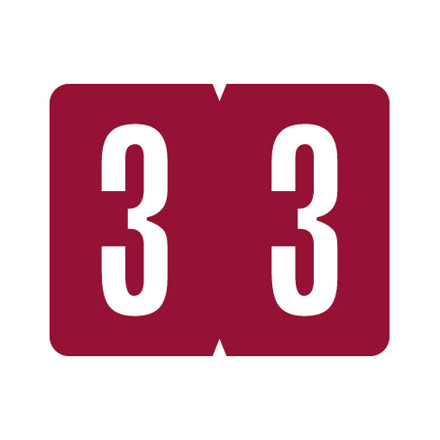 GBS VSNM numeric labels feature a wrap-around maroon background with a white number. The number will be visible on each side of the folder when applied. Each label is 1"H x 1-1/4"W before folding.