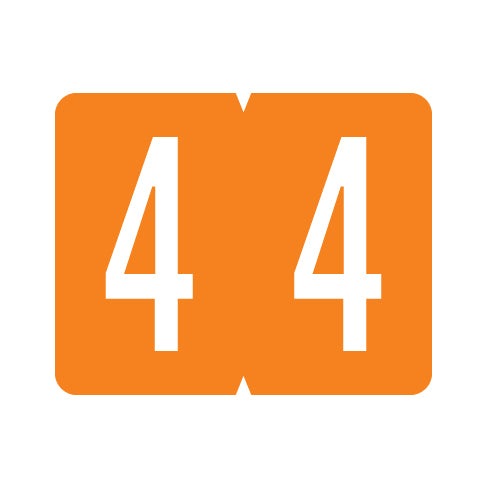 GBS VSNM numeric labels feature a wrap-around orange background with a white number. The number will be visible on each side of the folder when applied. Each label is 1"H x 1-1/4"W before folding.