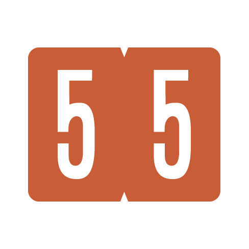 GBS VSNM numeric labels feature a wrap-around brown background with a white number. The number will be visible on each side of the folder when applied. Each label is 1"H x 1-1/4"W before folding.