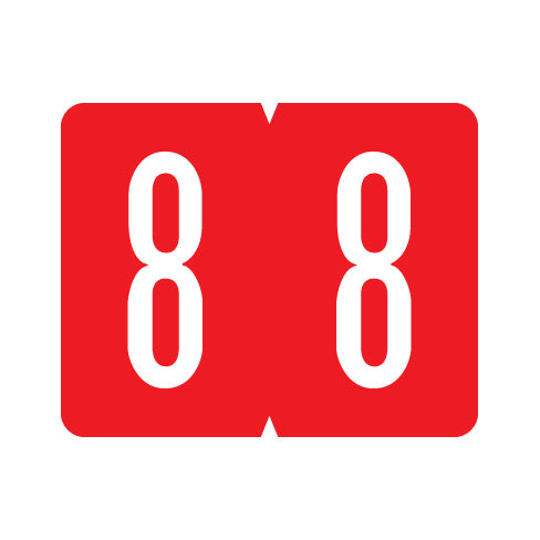 GBS VSNM numeric labels feature a wrap-around red background with a white number. The number will be visible on each side of the folder when applied. Each label is 1"H x 1-1/4"W before folding.
