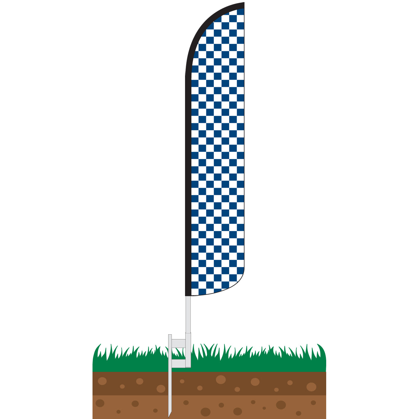 Checkered Blue/White Wind-Free Feather Flag features a blue and white checkered pattern.