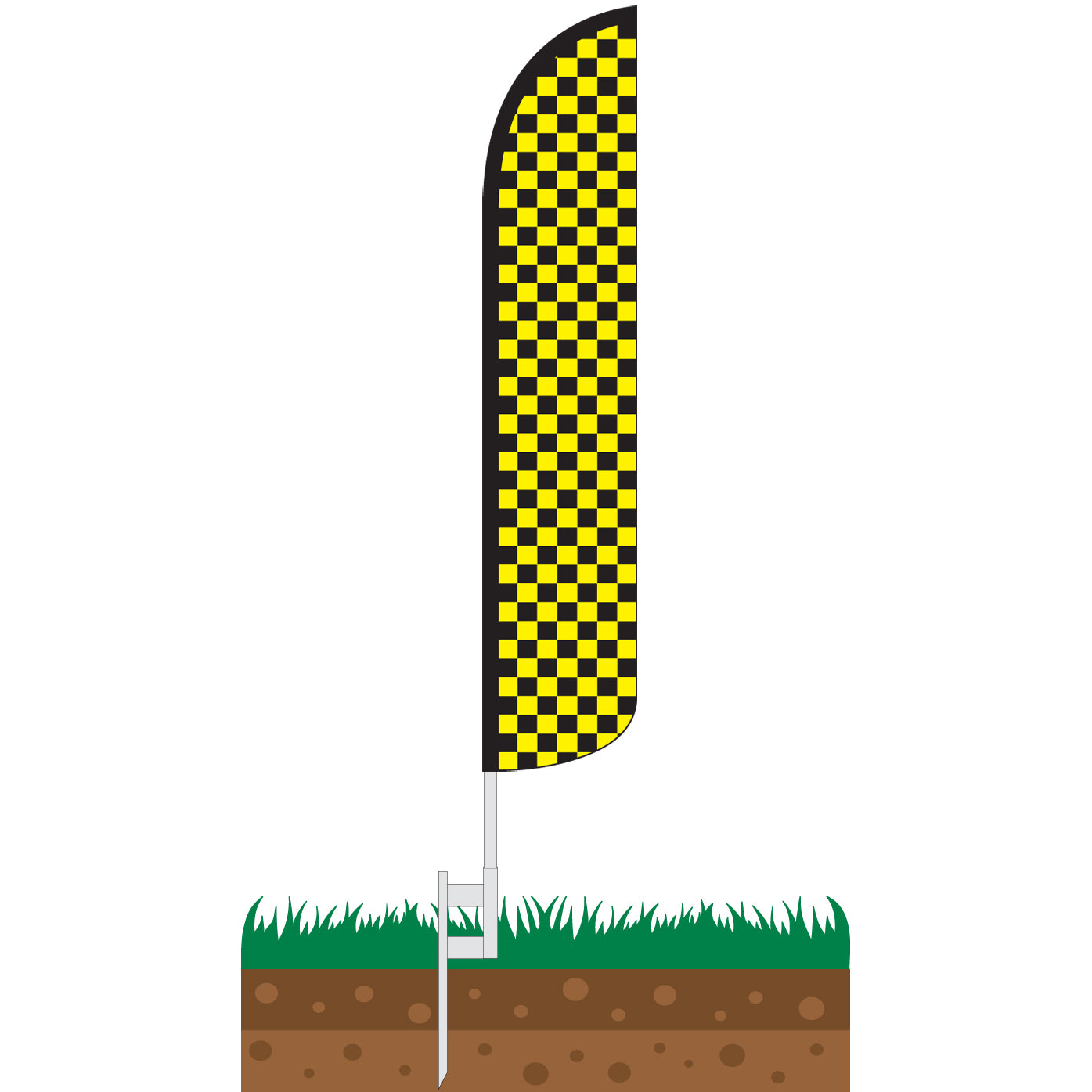 Checkered Black/Yellow Wind-Free Feather Flag features a black and yellow checkered pattern.